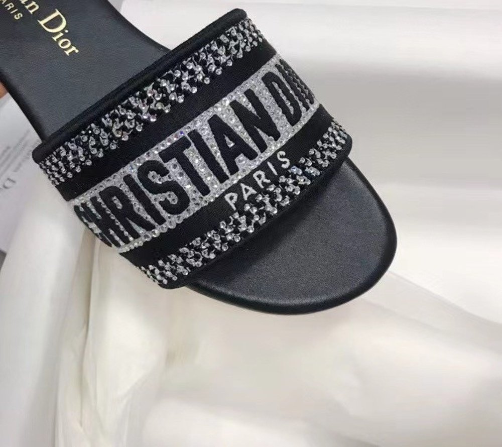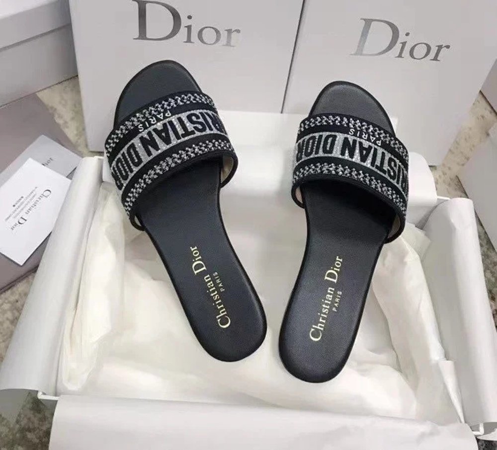 Be the first to review “Dior Dway Slides In Black Metallic Thread Embroidery and Strass” Cancel reply