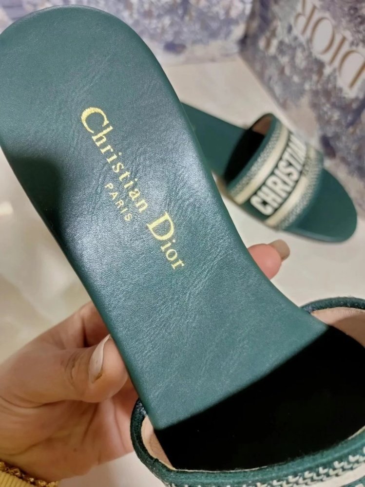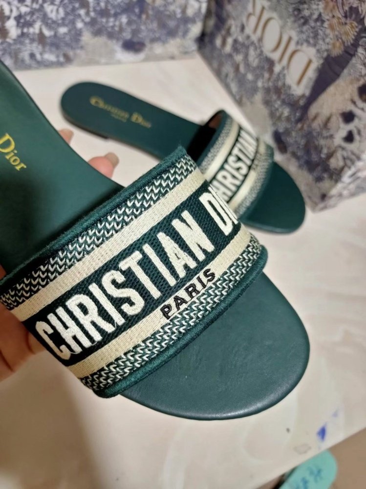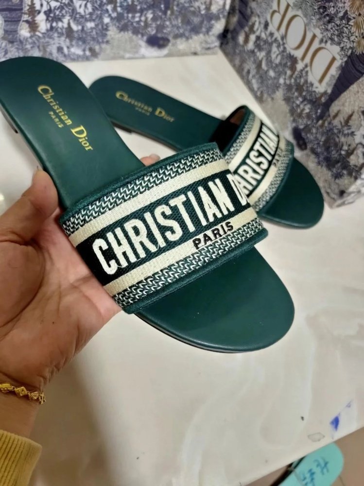 Home Shop Women shoes Dior women's shoes Dior Dway Slides In Green Embroidered Cotton