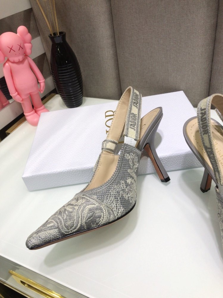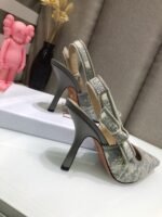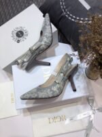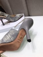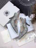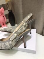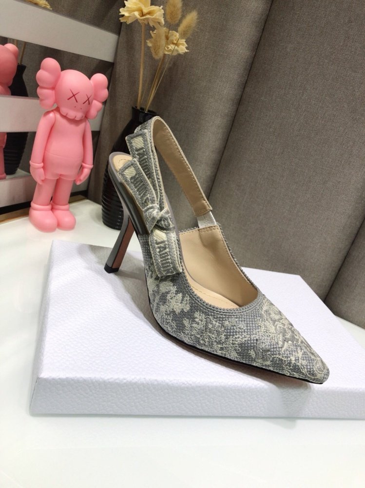 The J’Adior slingback pump has an elegant and graceful aesthetic and features emblematic details. Crafted in gray embroidered cotton, the style showcases the Toile de Jouy Reverse motif, a new take on the hallmark pattern with a play on reversed colors. Further enhanced by a ‘J’ADIOR’ ribbon with a flat bow, the pointed toe and comma heel shoe has sophisticated appeal and may be coordinated with other creations of the Toile de Jouy Reverse collection.