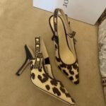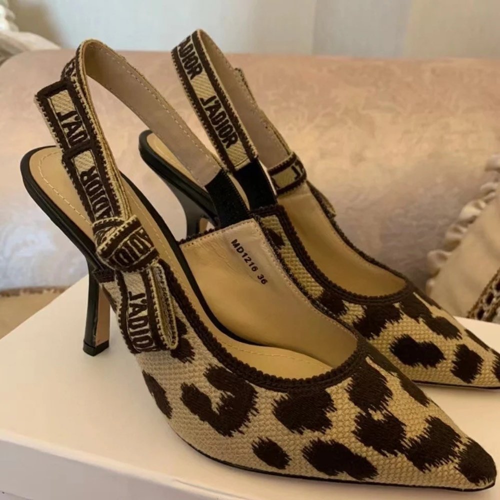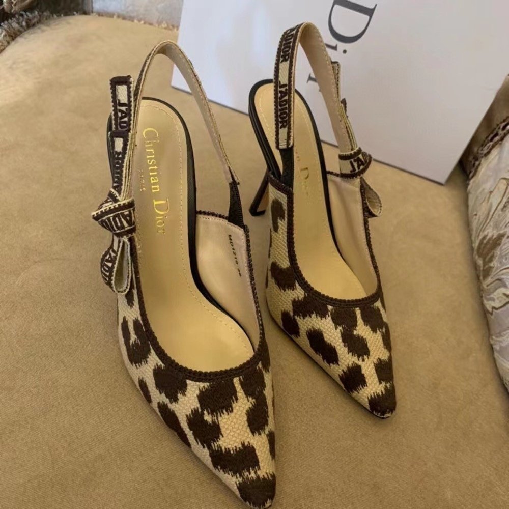 The J’Adior slingback pump is a prime example of Dior’s savoir-faire. The embroidered cotton design highlights the beige multicolor Mizza motif, inspired by a leopard pattern from the House archives. Embellished with a two-tone ‘J’ADIOR’ ribbon and flat bow, the elegant pointed-toe pump has a 10 cm comma heel and may be coordinated with other creations of the Mizza collection.