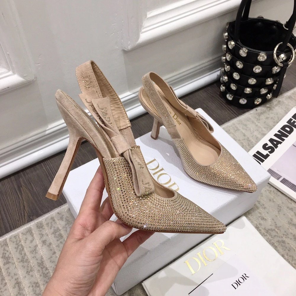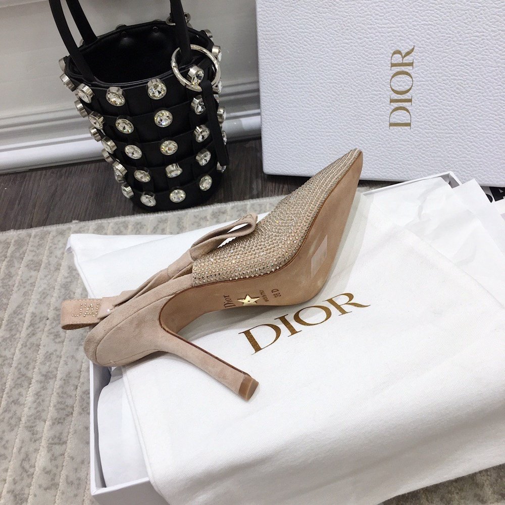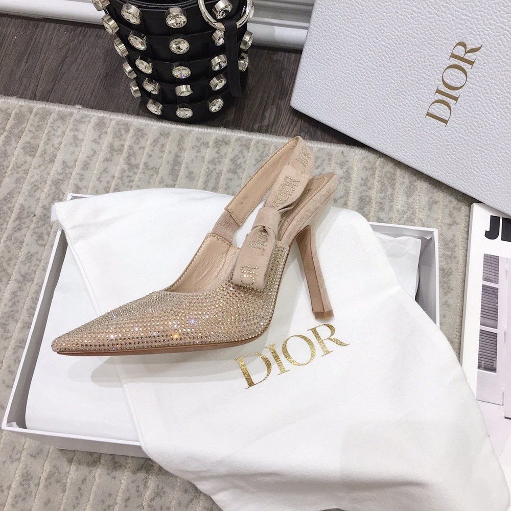 Home Shop Women shoes Dior women's shoes Dior J’Adior Slingback Pumps 100mm In Nude Suede With Strass
