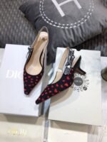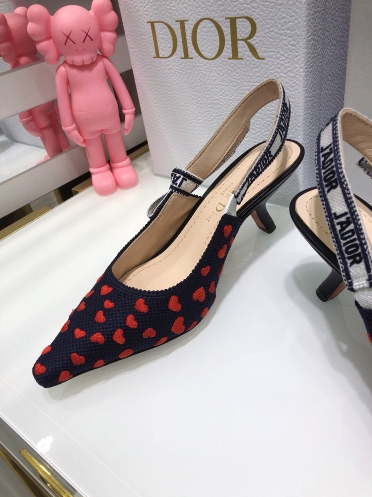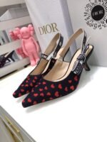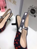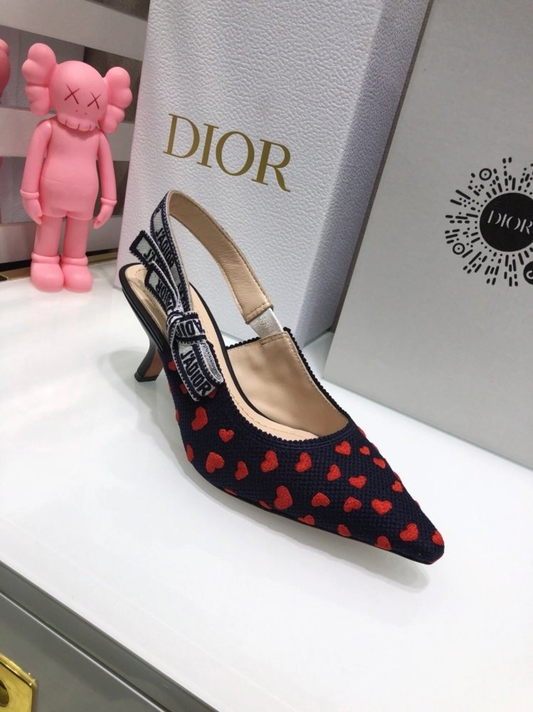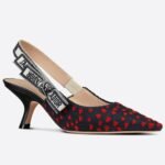 The J’Adior slingback pump is a prime example of Dior’s savoir-faire. The style showcases a navy blue and red hearts I Love Paris embroidered cotton, highlighted by a two-tone embroidered ‘J’ADIOR’ ribbon and further embellished with a flat bow, a signature detail in Maria Grazia Chiuri’s shoe collections. A 6.5 cm comma heel offers the finishing touch of elegance. The pump can be coordinated with other I Love Paris creations of the collection.