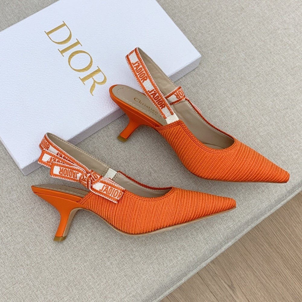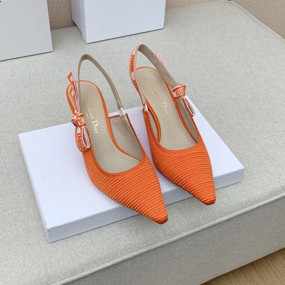 Home Shop Women shoes Dior women's shoes Dior J’Adior Slingback Pumps 65mm In Orange Cotton Embroidery