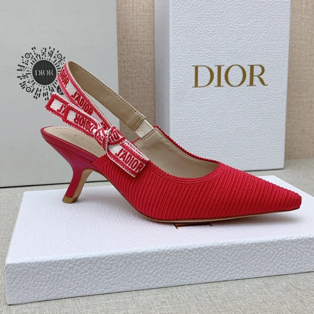 Home Shop Women shoes Dior women's shoes Dior J’Adior Slingback Pumps 65mm In Red Cotton Embroidery