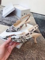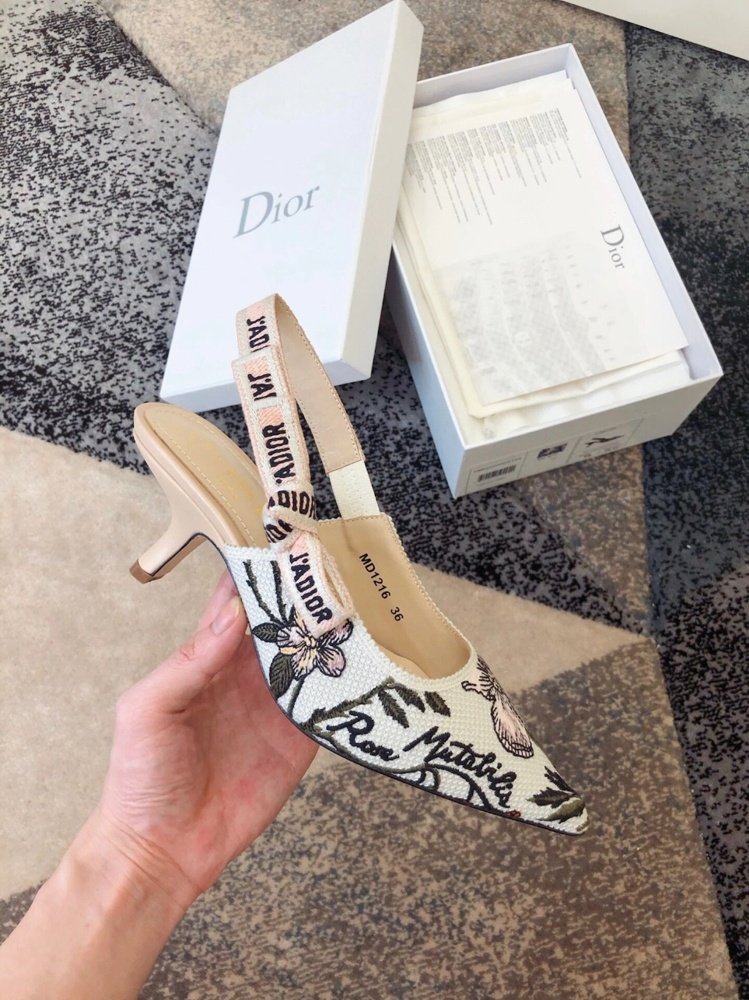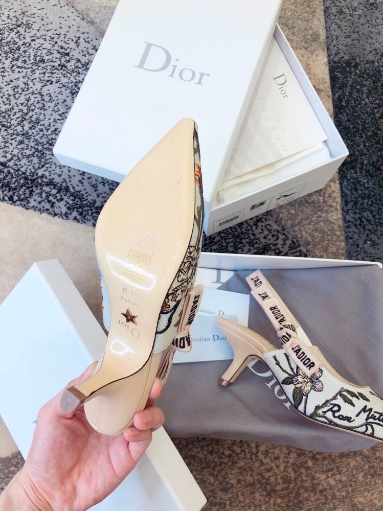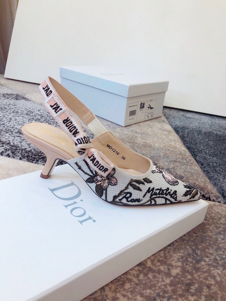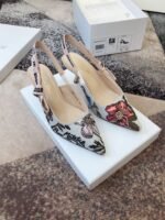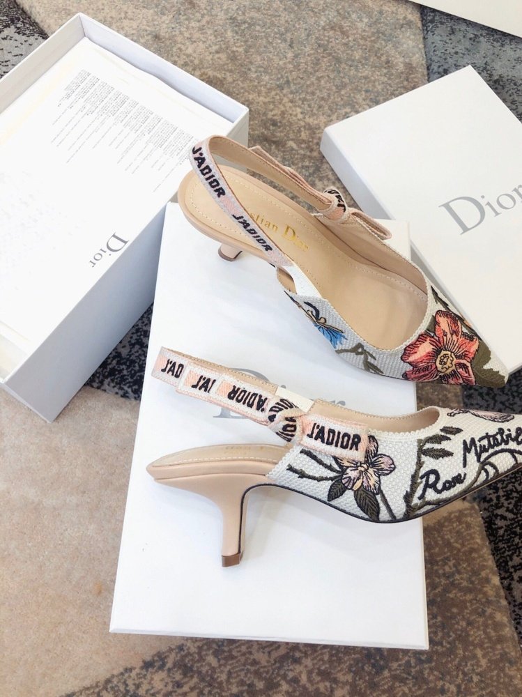 The J’Adior slingback pump presents an elegant and sophisticated aesthetic. Crafted from this season’s new Rosa Mutabilis embroidered cotton, the low-cut upper combines with a 6.5 cm comma heel to create a strong silhouette. Signature Dior details adorn this emblematic style with a tricolor ‘J’Adior’ embroidered cotton ribbon slingback strap and flat knot bow. Each pair is a veritable homage to the Christian Dior couture savoir-faire.