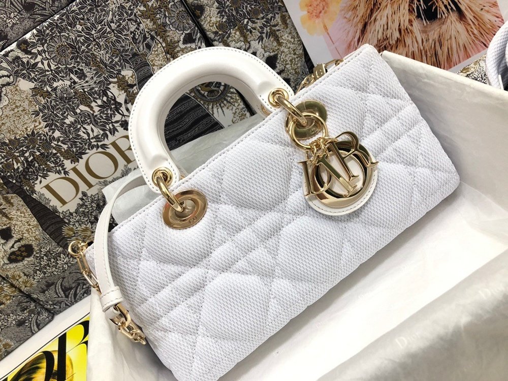 Home Shop Women shoes Dior women's shoes Dior Lady D-Joy Medium Bag In White Macrocannage Technical Fabric