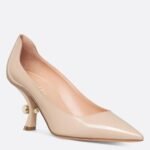 New for Fall 2024, the Dior Tribales pump displays couture appeal. The patent calfskin upper is accented by a graphic cutout on the heel counter. Its 8 cm comma heel is accented with white resin pearls. The rear pearl features a gold-tone CD signature inspired by the namesake earrings. The sophisticated pump has a pointed toe and can be paired easily with any evening wear.
